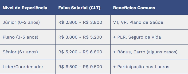 Baseado em dados de 2026 de portais como Glassdoor, Vagas.com e Catho: